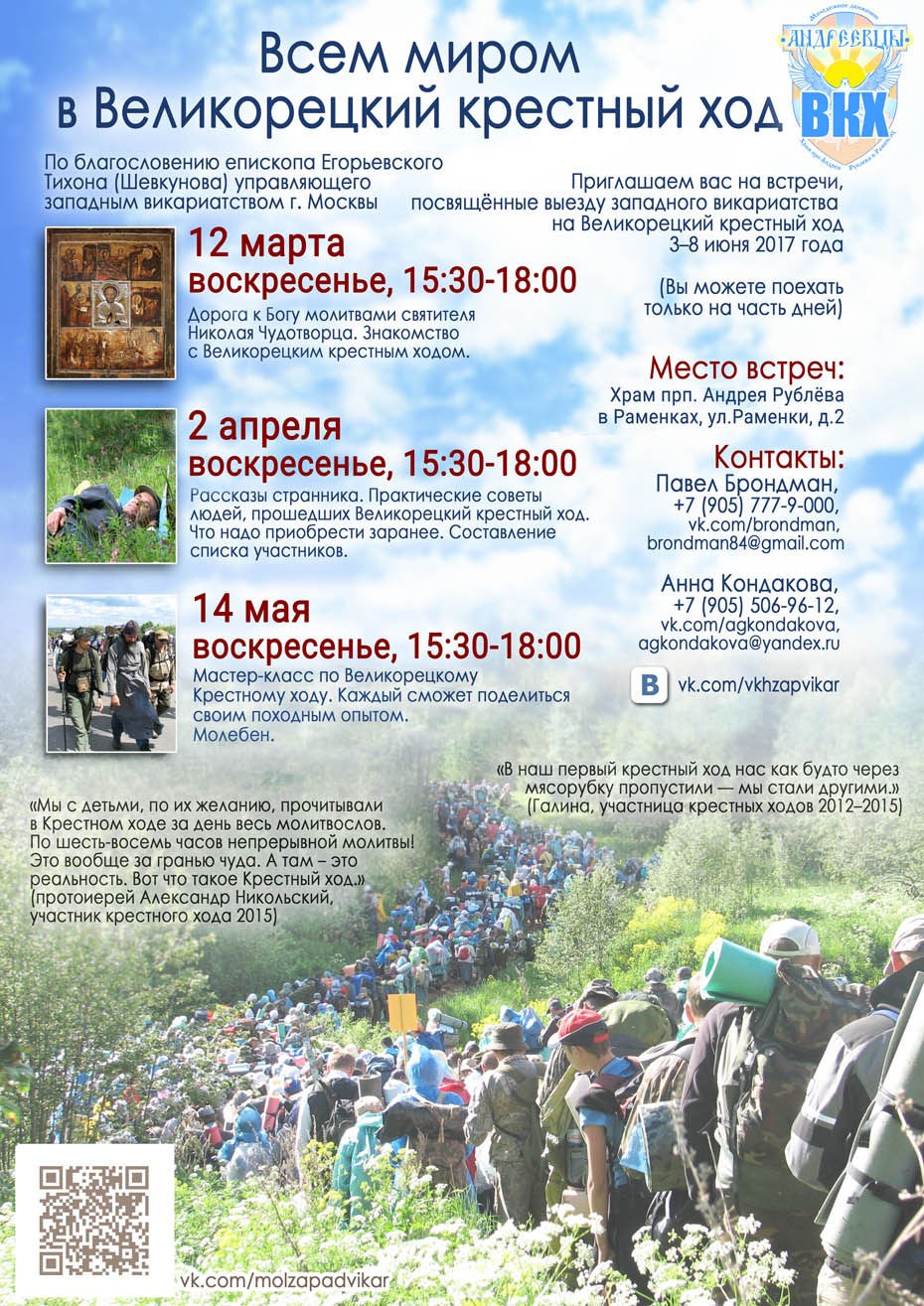 Приглашаем Вас на встречи, посвященные выезду западного викариатства на Великорецкий крестный ход 3-8 июня 2017 года